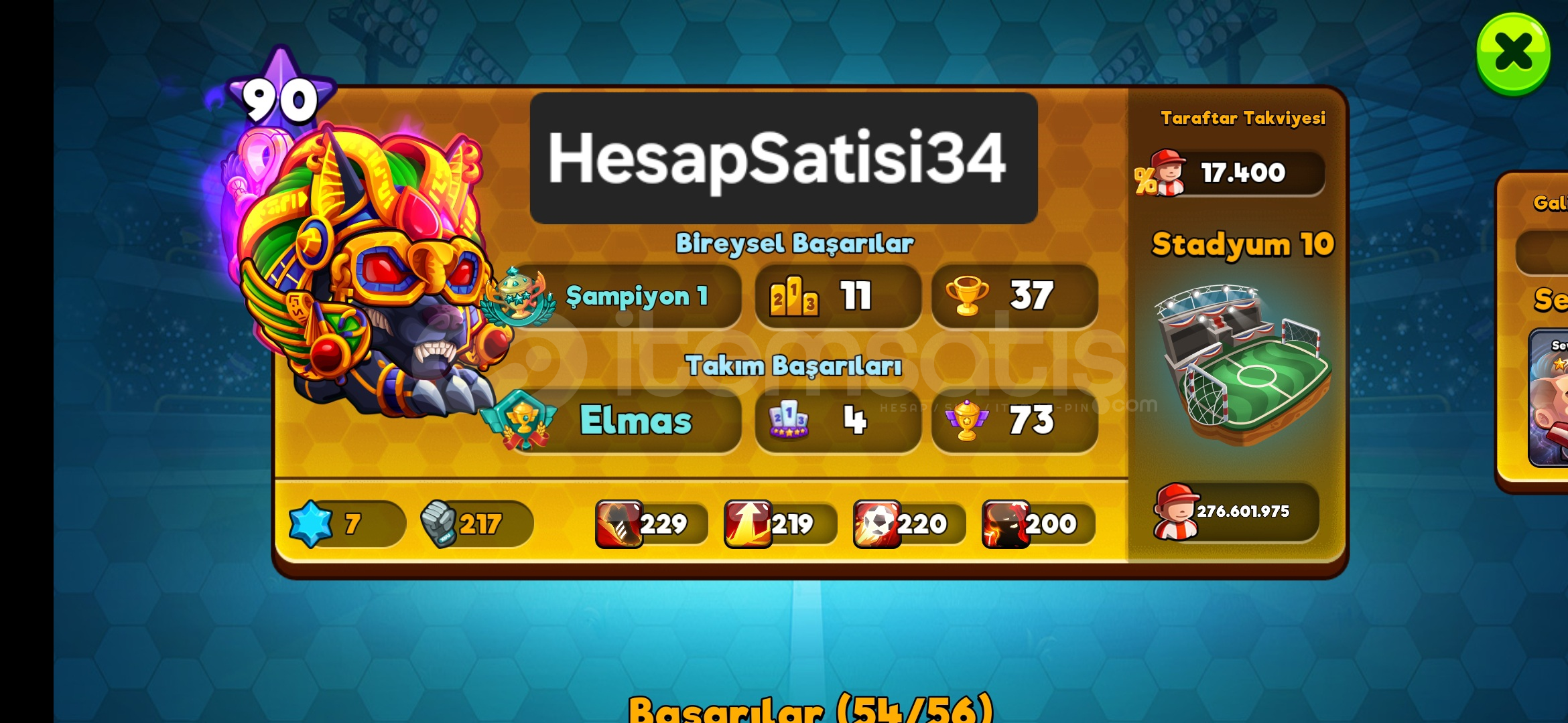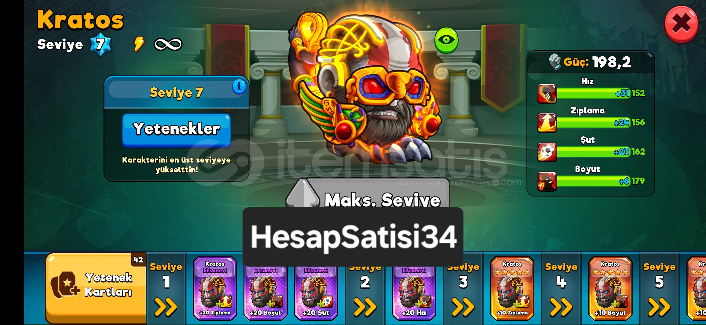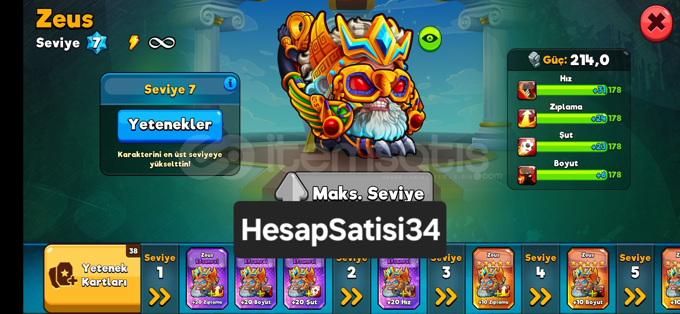 Hesap 90 SeviyeAnubis Zeus Kratos Hades Karakterlerin+20 ve %2000 Slotları Alındı%20020 Taraftar Takviyesi276 Milyon TaraftarMenajer So...