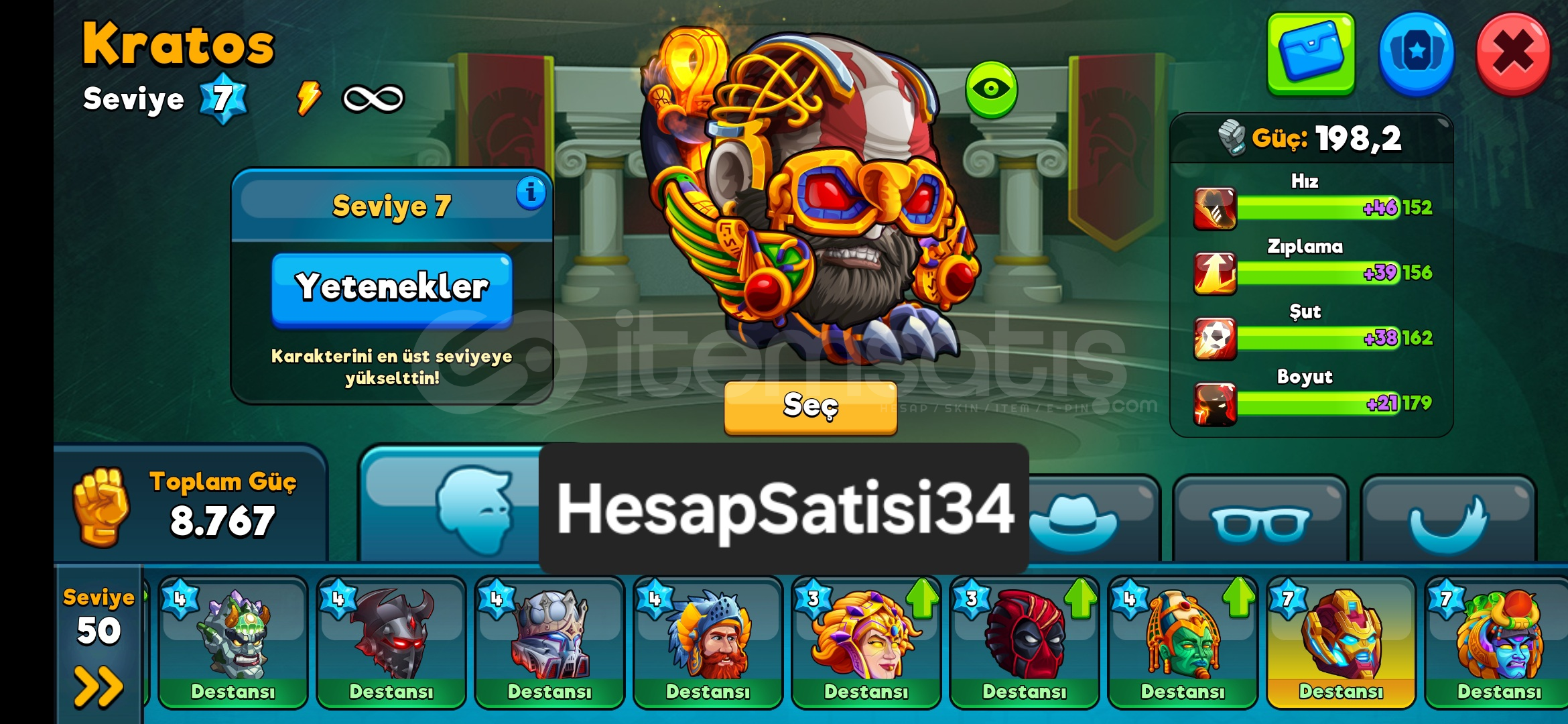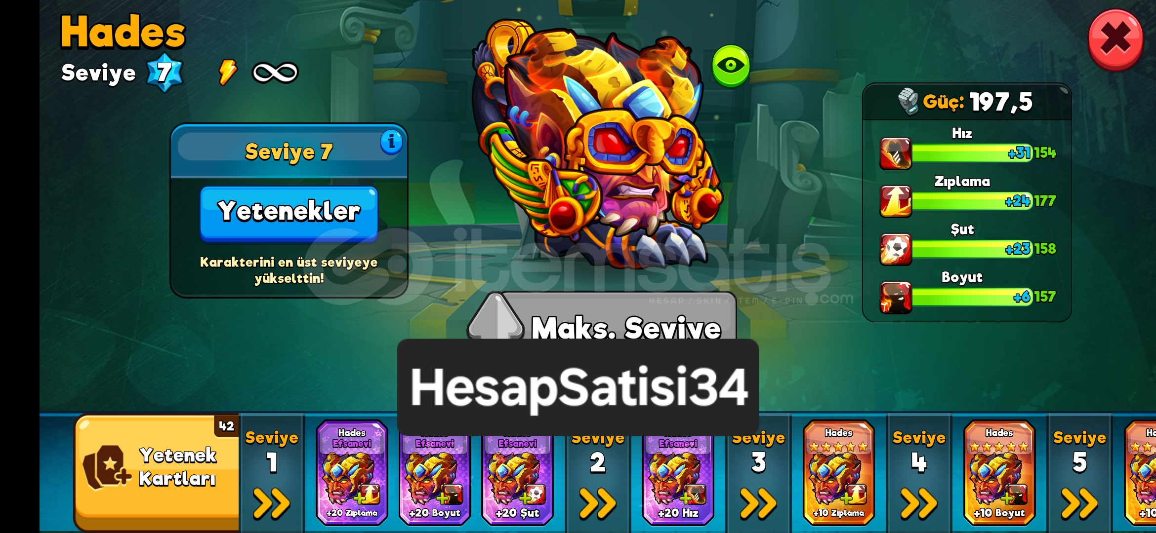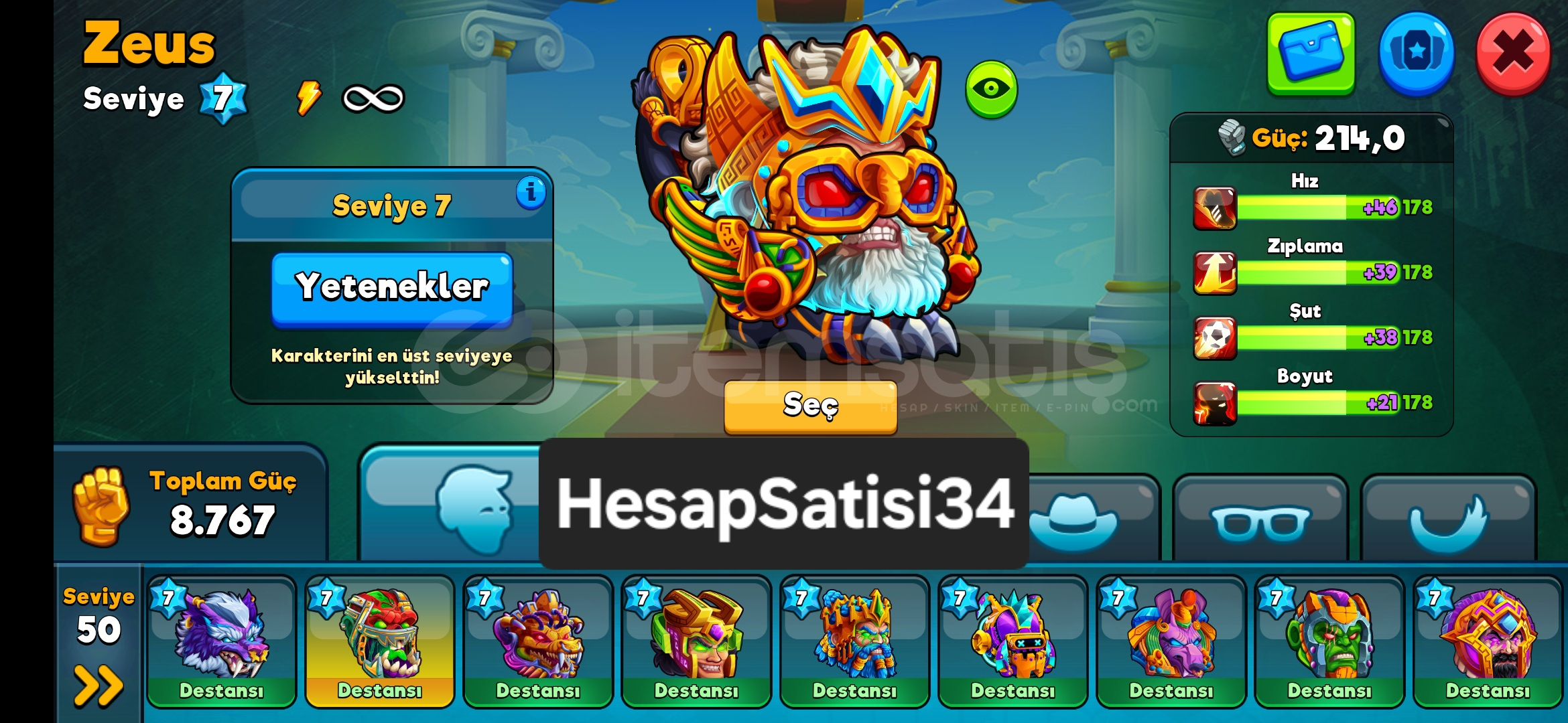 Hesap 90 SeviyeAnubis Zeus Kratos Hades Karakterlerin+20 ve %2000 Slotları Alındı%20020 Taraftar Takviyesi276 Milyon TaraftarMenajer So...