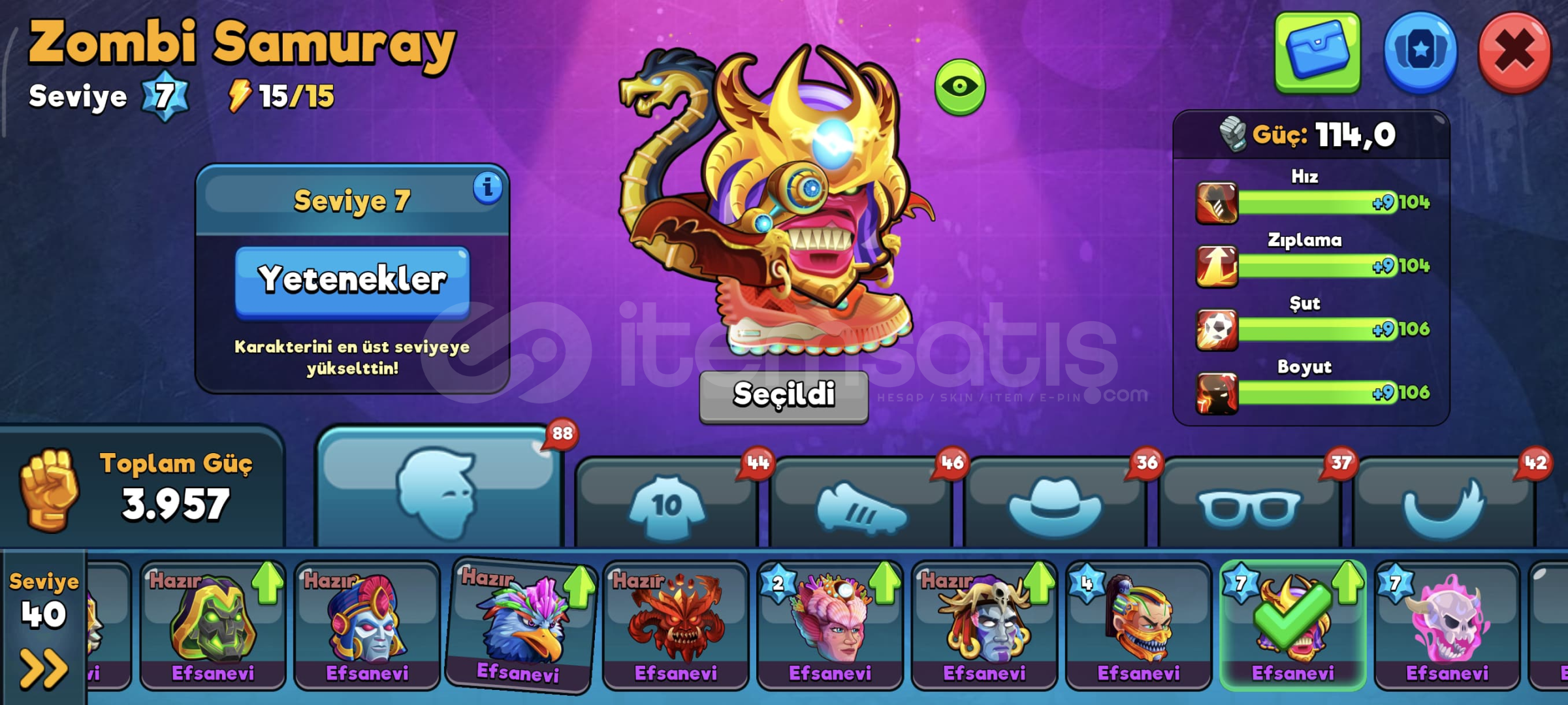 hesapta 100+ gücünde 3 adet karakter bulunmaktadır