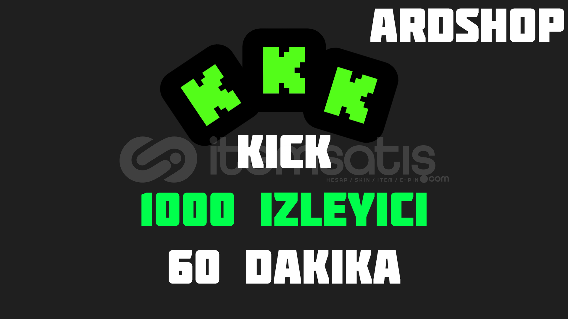 [60 Dakika] Kick 1000 İzleyiciSatın aldıktan sonra gönderime başlanır.Siparişler Hızlı İşleme Alınır.ARDSHOP GÜVENCESİYLEHızlı Teslim