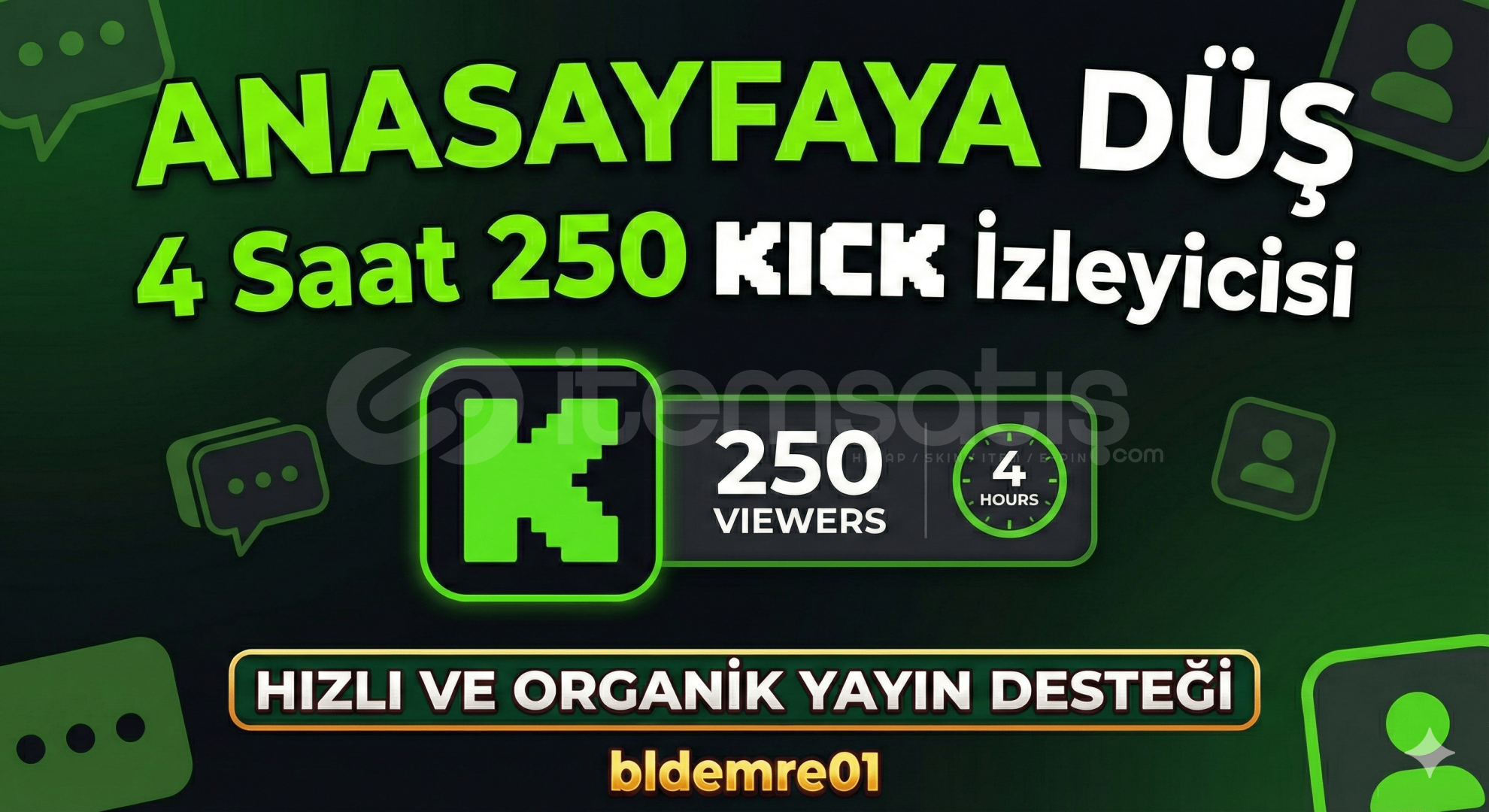 Kick yayınlarınızda etkileşimi artırmak ve üst sıralara çıkmak artık çok kolay! Sipariş verdiğiniz anda sistem otomatik olarak devreye girer, bekletmeden izleyicileri yayına aktarır.💎 Hizmet: 4 Saat - 250 Canlı İzleyici⚡ Hız: Çevrimdışı olsam bile otomatik teslimat.🔒 Güvenlik: Şifresiz işlem, sadece yay...