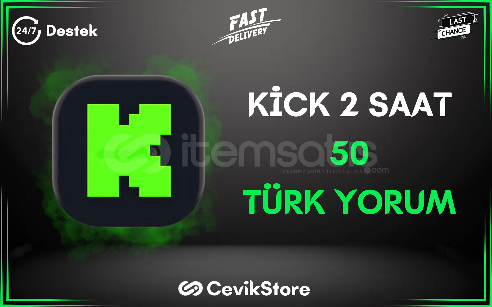 📎 Hizmet: Kick platformundaki canlı yayınınıza, 2 saat boyunca gerçek ve aktif Türk kullanıcılar tarafından özel yorum gönderimi sağlanır.