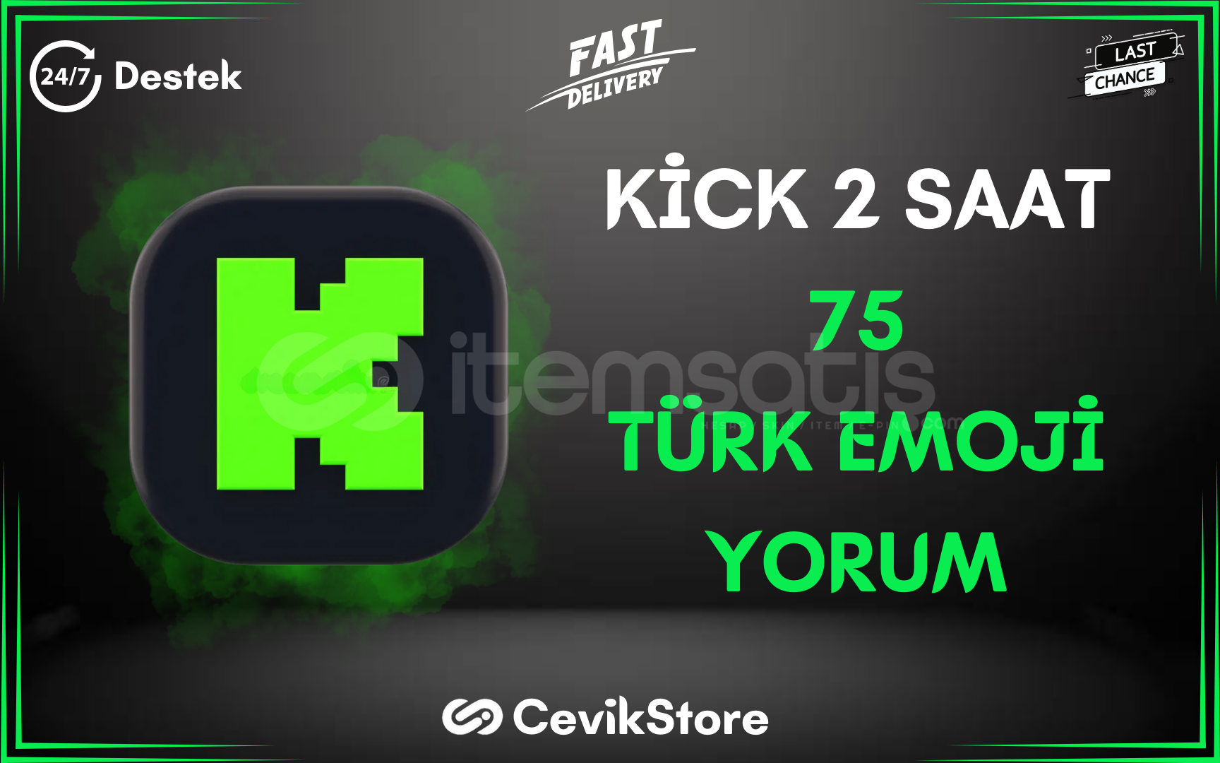 📎 Hizmet: Kick canlı yayınıza 2 saat boyunca Türk kullanıcılar tarafından emoji ağırlıklı yorum gönderimi sağlanır.