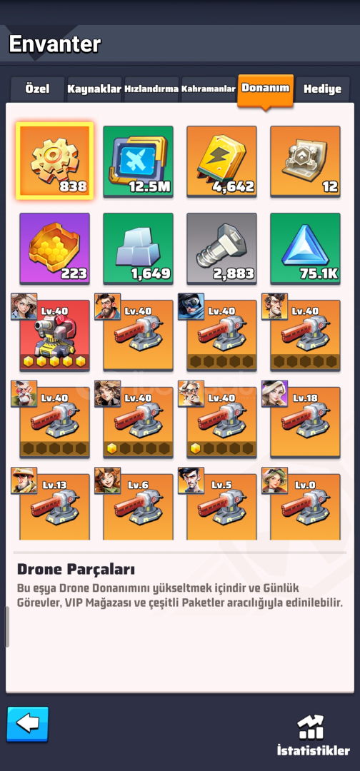 Merhaba tüm detaylar resimlerde mevcuttur. Güncel olarak oynuyorum geliştirmeleri yapıyorum.Drone 140Dekorasyon 7.900.000Toplam güç 173 milyon