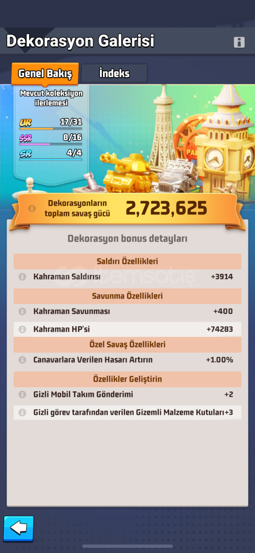 Hesap 26’dan 27. seviyeye basılmış çoğu kahraman alınmış kullanılmamış 1200 dekorasyon malzemesi sadece 4000 TL’ye markette satılıyor hesapta duruyor ayrıntılar fotoğraflarda server’ın birinci ittifakında üyedir hesap