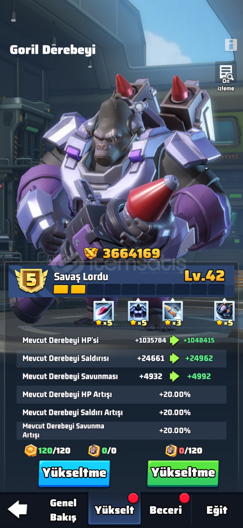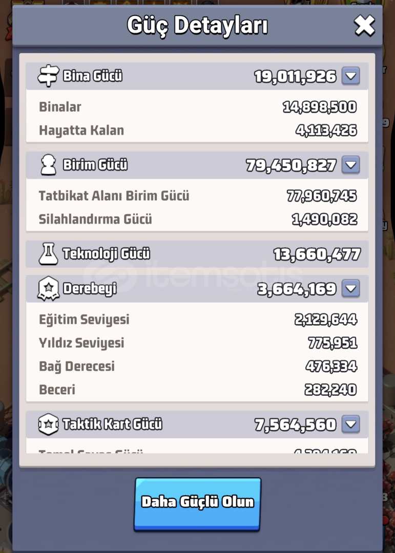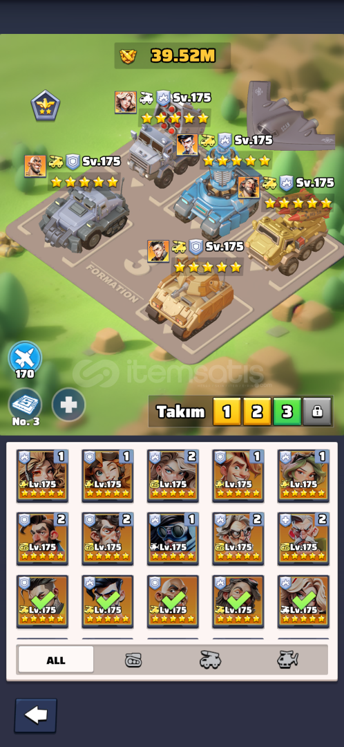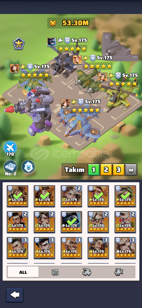 2 YILLIK HESAP OLDUĞUNDAN ENVANTER DOPDOLUDUR AYRICA BÜTÜN KAHRAMANLARIN ÖZEL SİLAHLARI AÇIKTIR.UÇAK TAKIMI: 53.30 TANK TAKIMI: 43.25FÜZE TAKIMI: 39.52GENEL GÜÇ: 291.800.000MESLEK: 100 SV.