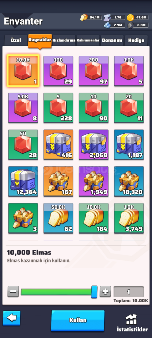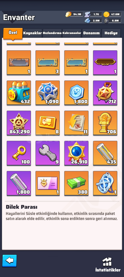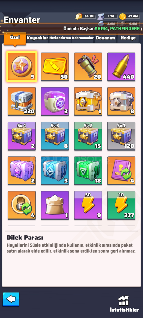 - çok fazla birikim yapılmıştır (ışıltılı pazar- cephane bonanza-onurlu görev sandıkları- altın ekmek demir-sezon parası-100 k elmas vs)