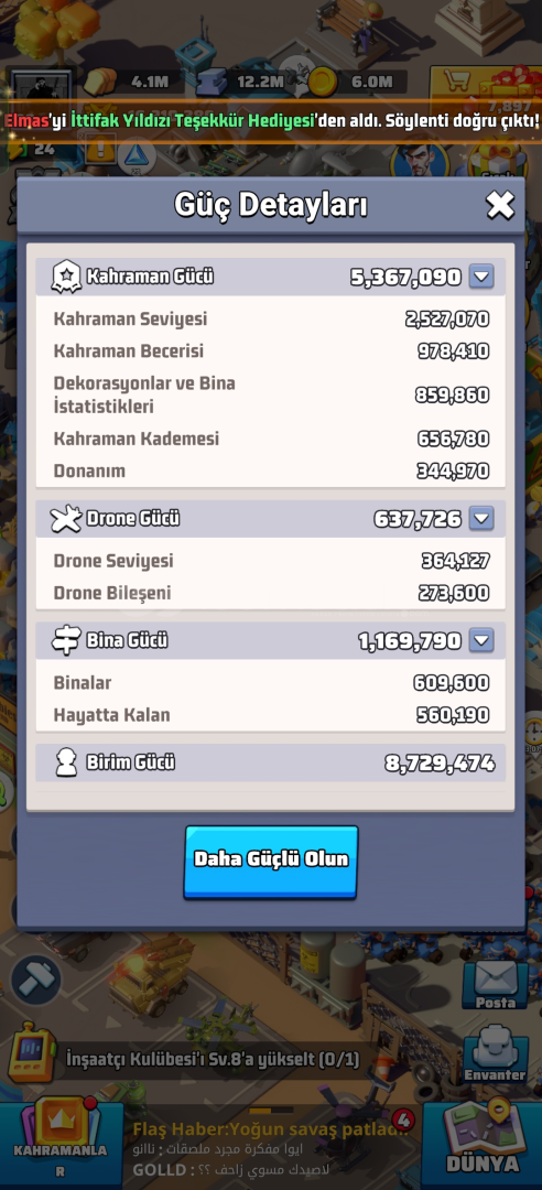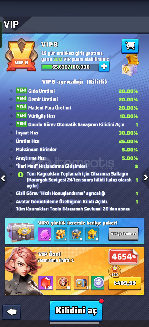 HQ 21 seviye hesap (pazarlık yapılır)VIP 86 adet UR (sarı) komutan4 adet sarı komutan donanımı17M güç5k elmasServer: 1969Güvenli manuel teslimat yapılacaktır.