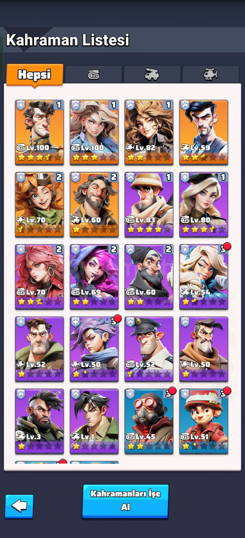 HQ 21 seviye hesap (pazarlık yapılır)VIP 86 adet UR (sarı) komutan4 adet sarı komutan donanımı17M güç5k...