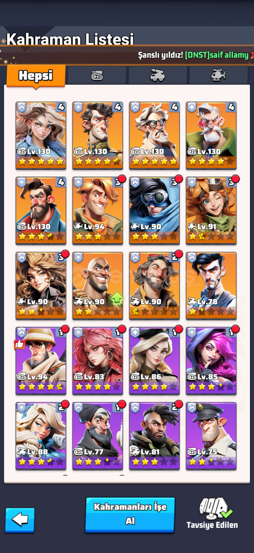 Hesaba yaklaşık 40.000 tl civarında bir yatırım yapıldı. Oldukça dolu ve güçlü bir hesap. Karargah 27 ye doğru ilerliyor. Teknoloji Merkezi full olmasada iyi durumda. 1865 sunucusunda güzel eğlenceli vakit geçirebilirsiniz. McGregor ve Schuyler haricinde Tüm UR şampiyonlar mevcut. Kimber ve Stetman 5 Yıldız. Silah seviyeleri iyi durumda.