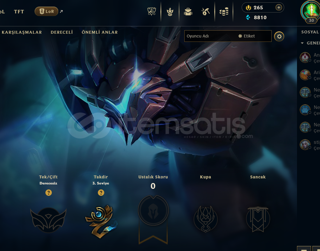 1 Kostümlü 30 Level EUW HesapHesabın op.gg linki: https://op.gg/lol/summoners/EUW/Ethan%20McLaren-EUW