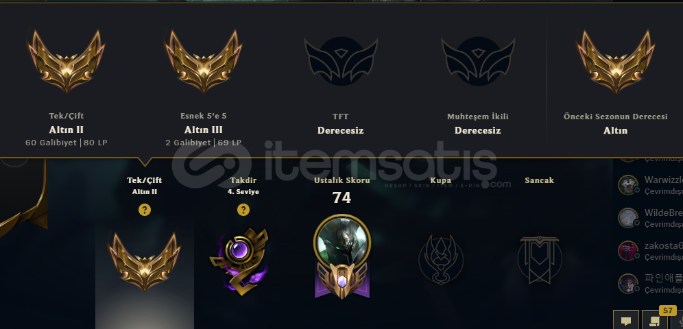 Hesabın op.gg linki: https://op.gg/tr/lol/summoners/EUW/Venenow252-EUWHesapla ilgili tüm detaylar ilan görsellerinde bulunmaktadır.