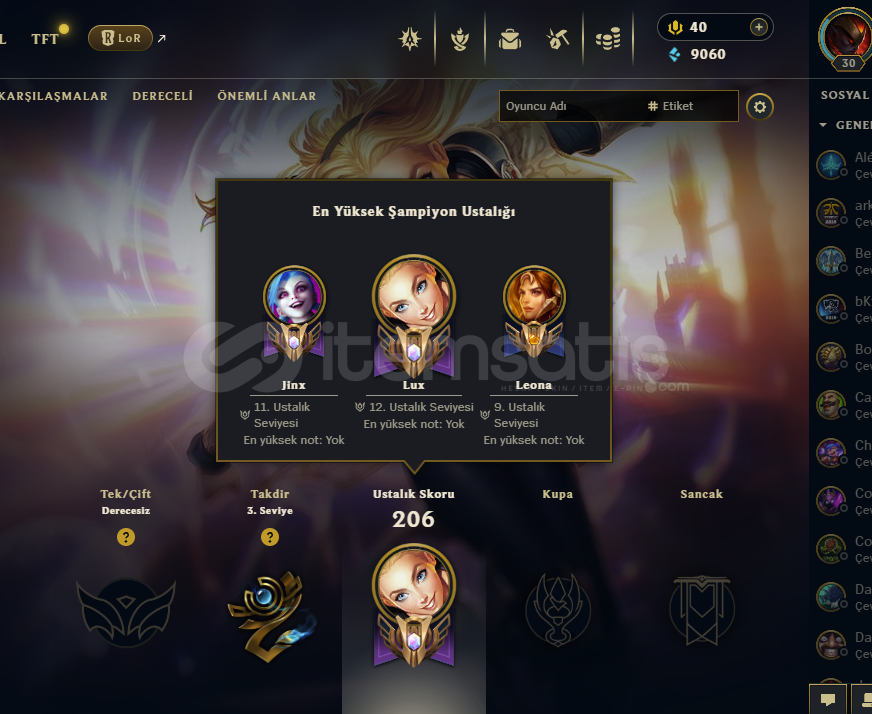 13 Kostümlü 30 Level EUW HesapHesabın op.gg linki: https://op.gg/tr/lol/summoners/EUW/Ug%20Zaiiden-EUW