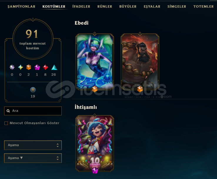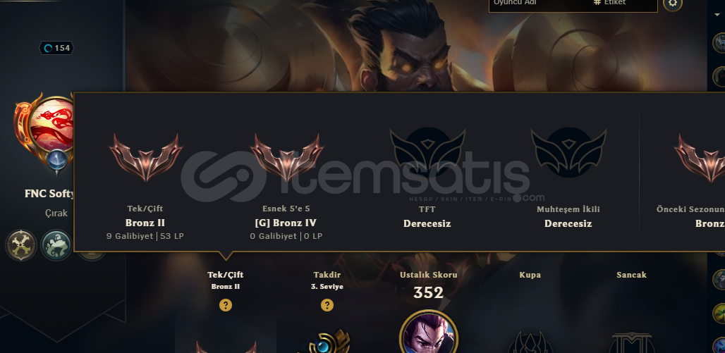 BRONZ STUCK EĞLENMELİKTEK ÇİFT BRONZ 2ESNEK BRONZ 4GEÇEN SEZON BRONZ BİTİRDİ16 RP VAR9K Mavi öz var154 seviye91 KOSTÜM VARDJ SONALIRUH BEKÇİSİ UDYR KOSTÜMLÜ65 ifade açık195 simge açık17 totem görünümü 1 renk paketieski dolu hesap
