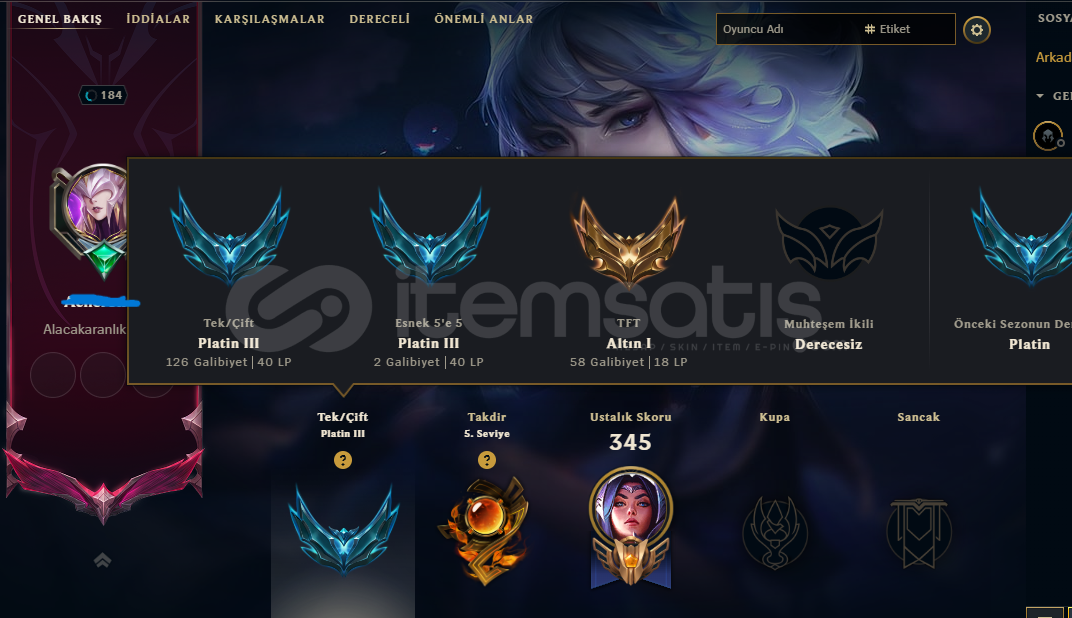Selam oyunlara ayıracak vaktim kalmadığı için zaten bu hesapla da çok nadiren oynadığım için satılıktır.101 kostum109 ifade156 simge2251 turuncu oz101 ihtiasmlı oztft-51 strateji ustası4 map3 catapat2 gecitvalo- xerofang vandal+ bir kaç tane de battlepass skini 31 Aralık 2025 tarihi itibariyle mevcut olarak LOL ve TFT battlepass aktiftir