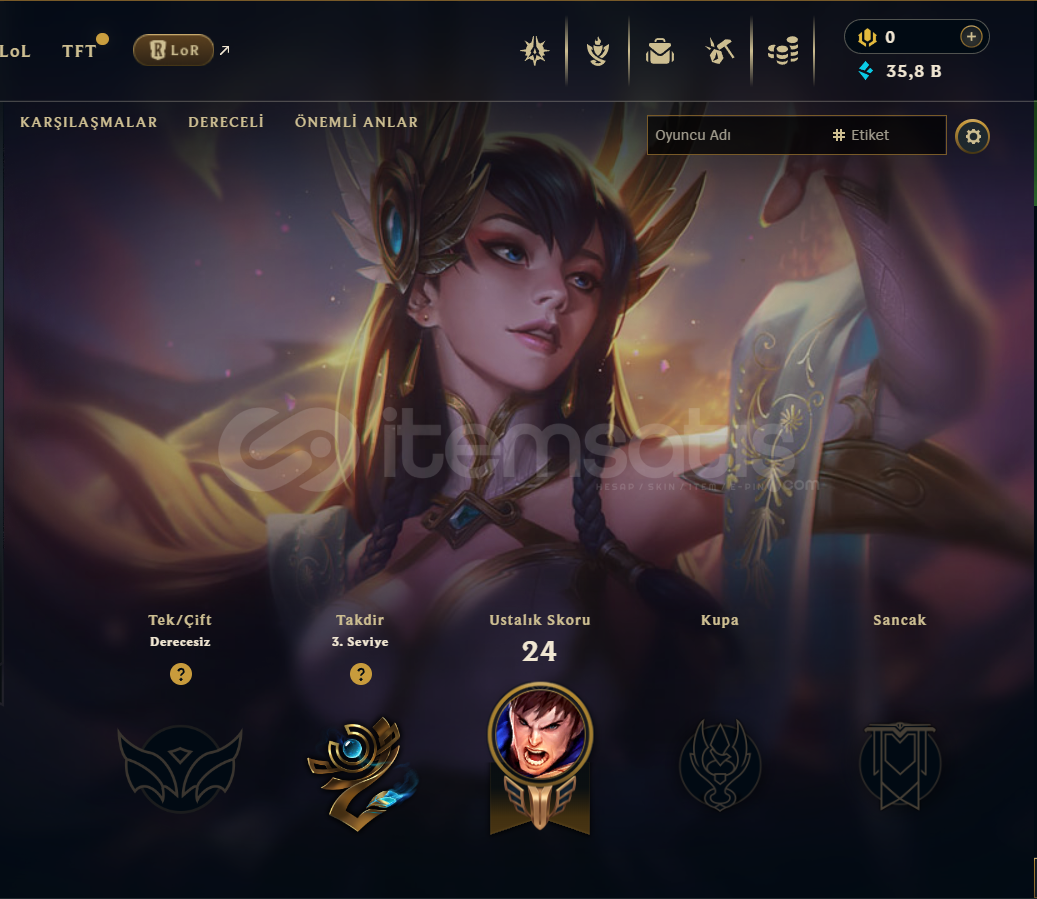 Hesap 2020 kurulum maç geçmişi olmayan eski hesaptır ban yemez . Hesap sizin mailinize kaydedilecek . Hesap 47 Level ve Unranked . Hiçbir ban yok . Bol mavi öz mevcut . Kaliteli kostümler ve isim değiştirme hakkı mevcut . 7/24 sorunsuz teslimat . Alana hayırlı olsun . 9