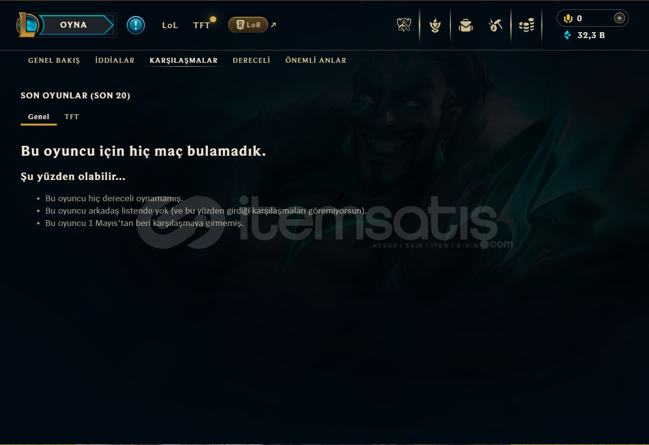 Hesap 2021 kurulum maç geçmişi olmayan eski hesaptır ban yemez . Hesap sizin mailinize kaydedilecek . Hesap 59 Level Unranked ve Fresh . Hiçbir ban yok . 32 Bin mavi öz mevcut . Kaliteli ve bol kostümler mevcut . İsim değiştirme hakkı mevcut . 7/24 sorunsuz teslimat . Alana hayırlı olsun .