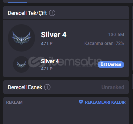 Hesap 2021 kurulum eski hesaptır ban yemez . Hesap sizin mailinize kaydedilecek . Hesap 57 Level ve Gümüş 4 . Dereceli hazır ve hiçbir ban yok . Yüzde 75 kazanma oranı mevcut . İsim değiştirme hakkı mevcut . Alana hayırlı olsun .