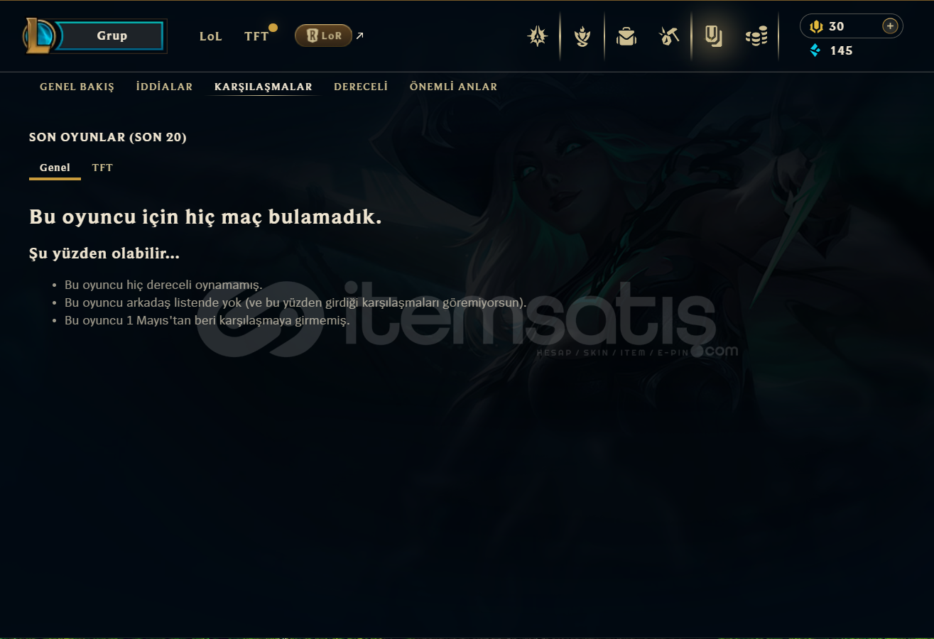 Hesap 2021 kurulum maç geçmişi olmayan eski hesaptır ban yemez . Hesap sizin mailinize kaydedilecek . Hesap 49 Level ve Unranked . Hiçbir ban yok . Kaliteli kostümler ve isim değiştirme hakkı mevcut . 7/24 sorunsuz teslimat . Alana hayırlı olsun .