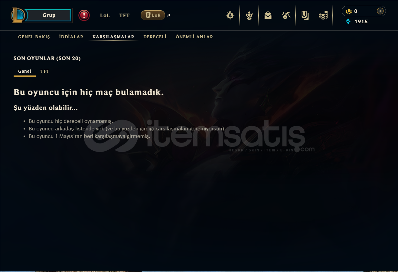 Hesap 2021 kurulum maç geçmişi olmayan eski hesaptır ban yemez . Hesap sizin mailinize kaydedilecek . Hesap 56 Level ve Unranked . Hiçbir ban yok . Kaliteli kostümler ve isim değiştirme hakkı mevcut . 7/24 sorunsuz teslimat . Alana hayırlı olsun .