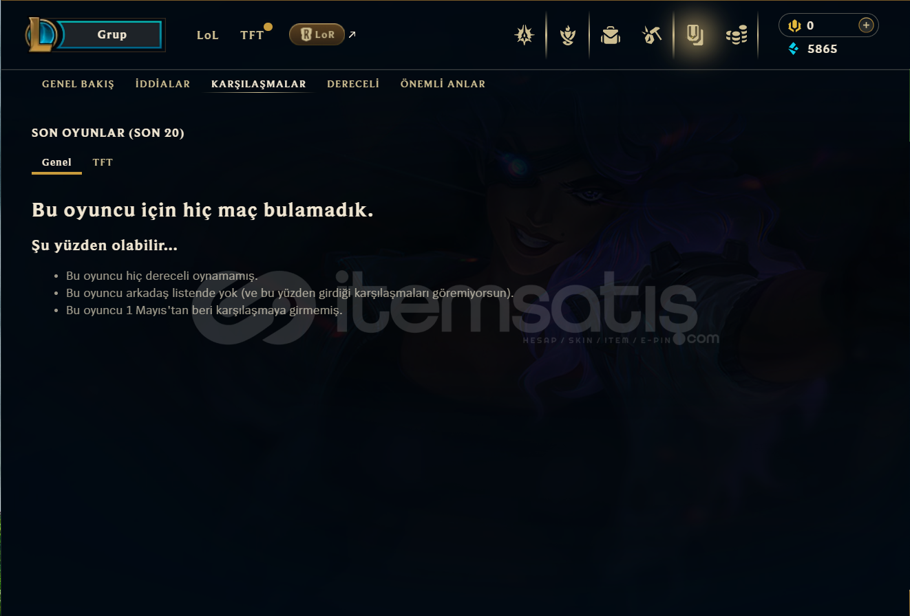 Hesap 2021 kurulum maç geçmişi olmayan eski hesaptır ban yemez . Hesap sizin mailinize kaydedilecek . Hesap 65 Level ve Unranked . Hiçbir ban yok . Kaliteli kostümler ve isim değiştirme hakkı mevcut . 7/24 sorunsuz teslimat . Alana hayırlı olsun .