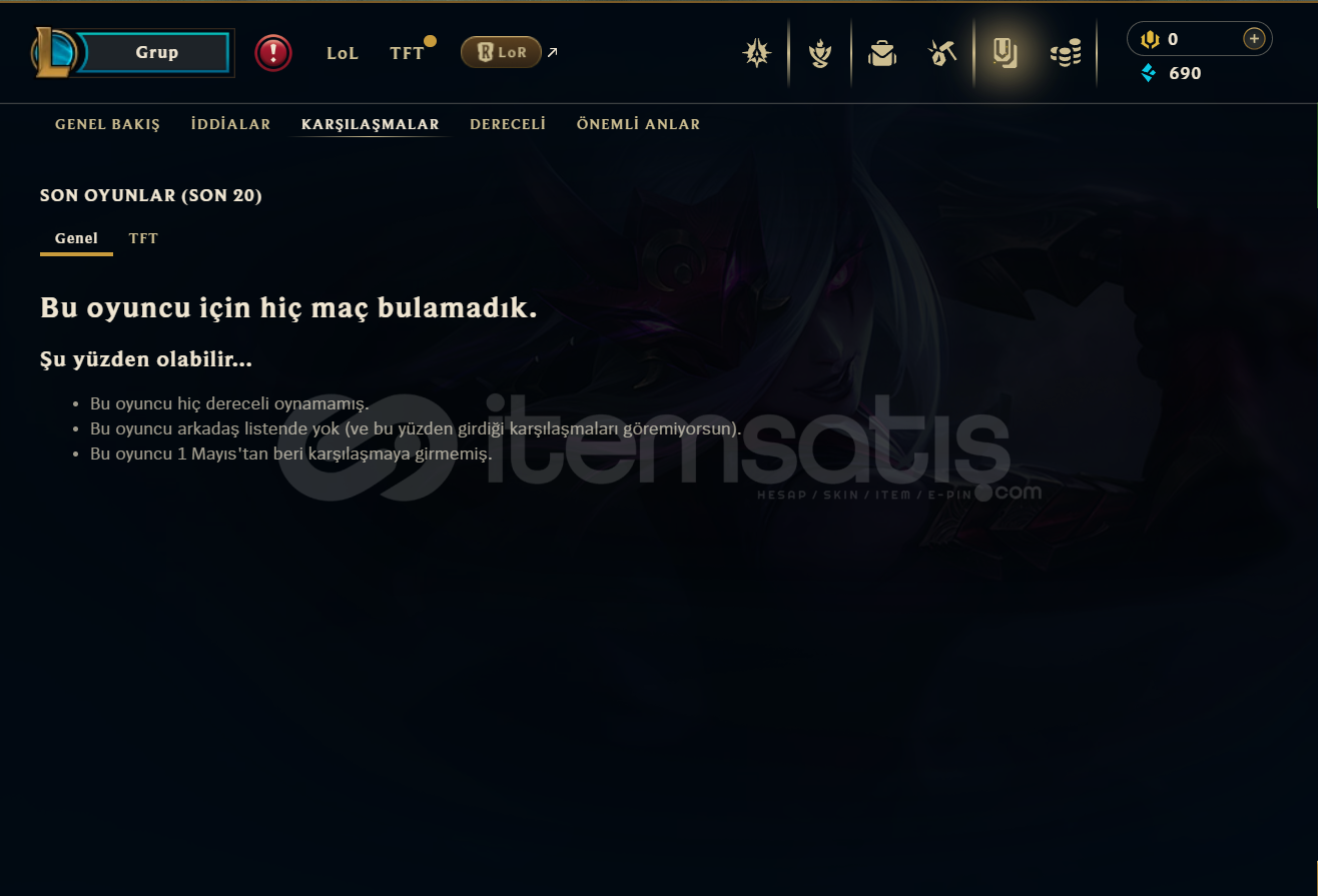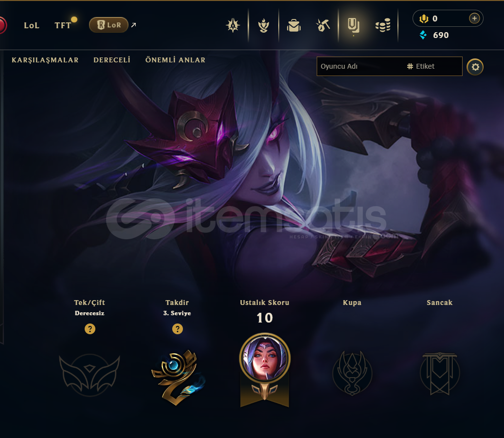 Hesap 2021 kurulum maç geçmişi olmayan eski hesaptır ban yemez . Hesap sizin mailinize kaydedilecek . Hesap 61 Level ve Unranked . Hiçbir ban yok . Kaliteli kostümler ve isim değiştirme hakkı mevcut . 7/24 sorunsuz teslimat . Alana hayırlı olsun .