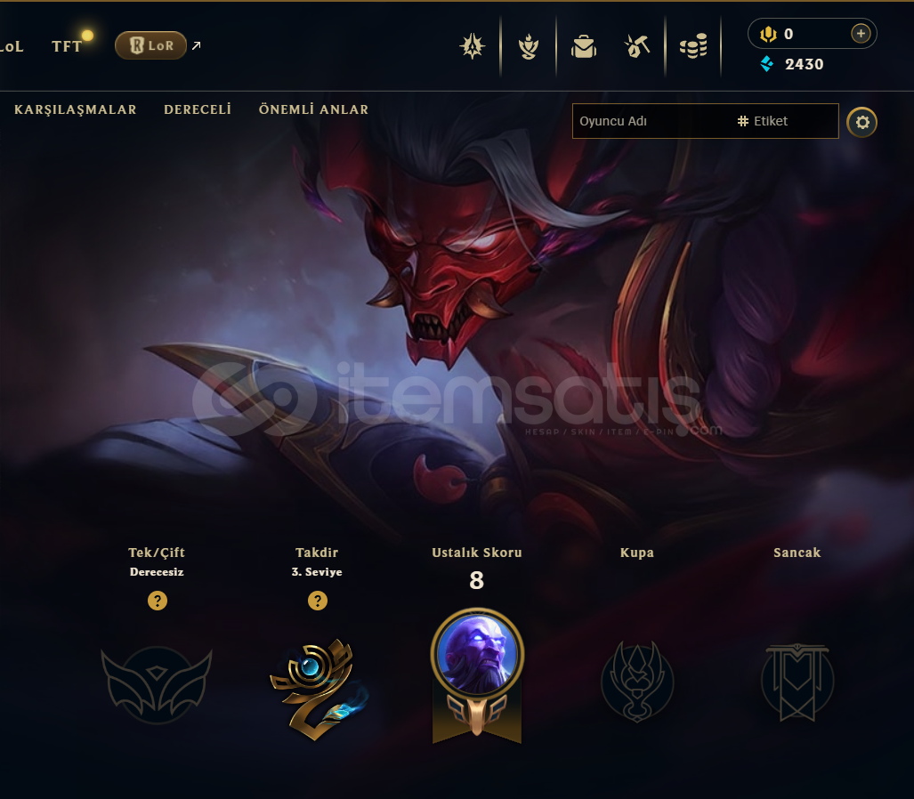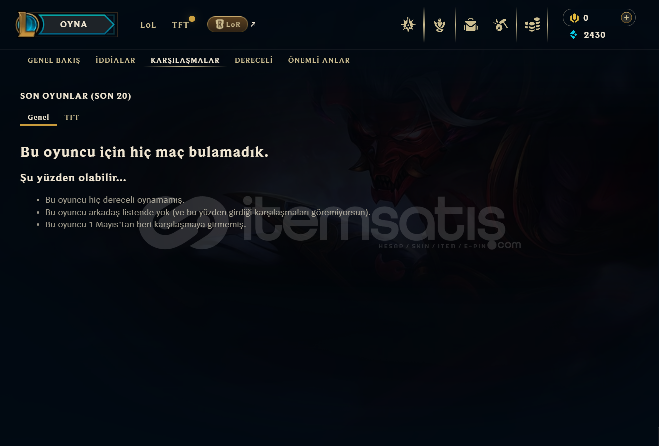 Hesap 2021 kurulum maç geçmişi olmayan eski hesaptır ban yemez . Hesap sizin mailinize kaydedilecek . Hesap 56 Level ve Unranked . Hiçbir ban yok . Kaliteli kostümler ve isim değiştirme hakkı mevcut . 7/24 sorunsuz teslimat . Alana hayırlı olsun . 30