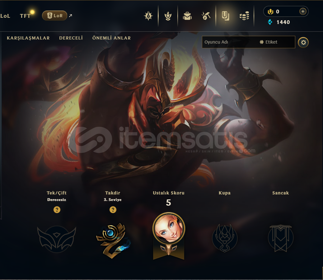 Hesap 2021 kurulum maç geçmişi olmayan eski hesaptır ban yemez . Hesap sizin mailinize kaydedilecek . Hesap 60 Level ve Unranked . Kaliteli kostümler ve isim değiştirme hakkı mevcut . 7/24 sorunsuz teslimat . Alana hayırlı olsun .