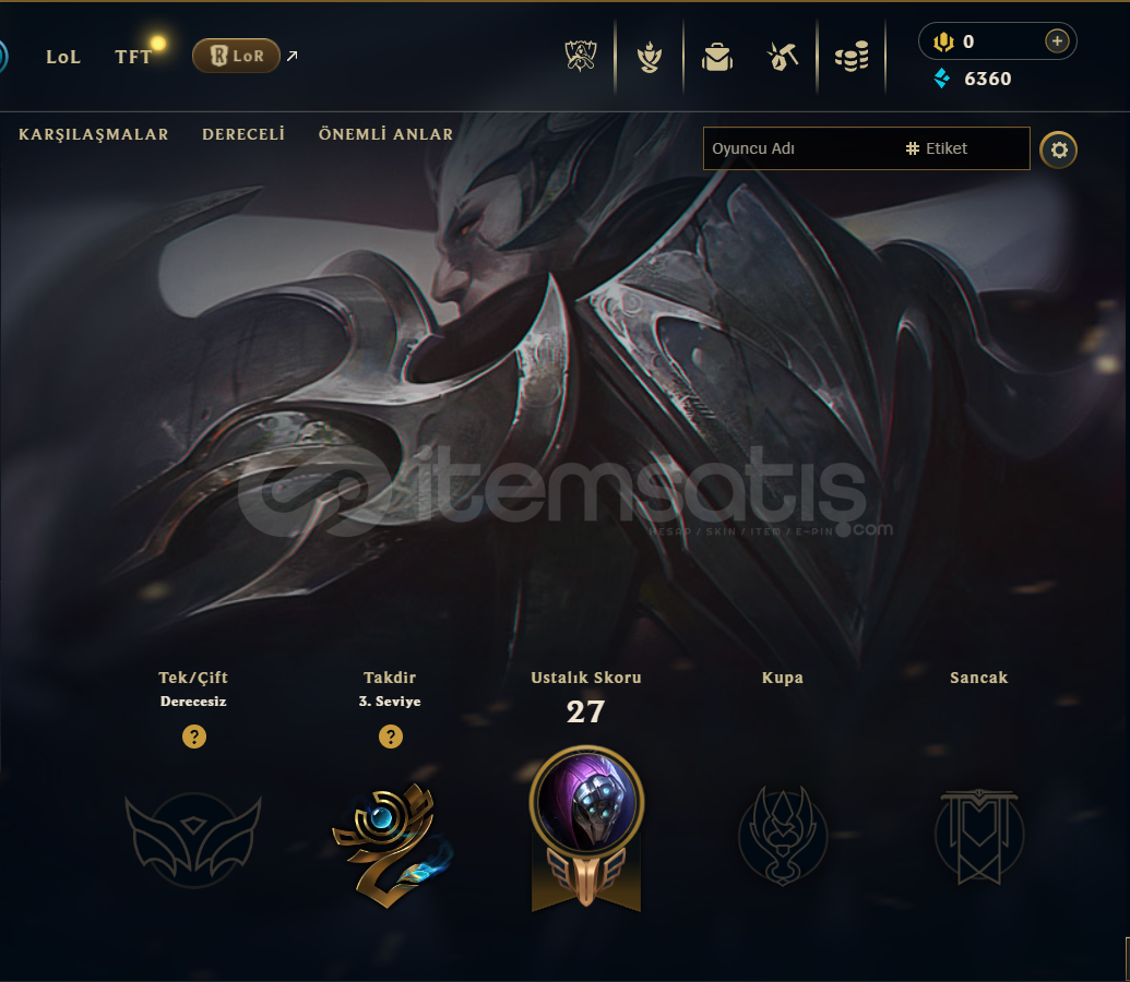 Hesap 2021 kurulum maç geçmişi olmayan eski hesaptır ban yemez . Hesap sizin mailinize kaydedilecek . Hesap 61 Level ve Unranked . Hiçbir ban yok . Kaliteli ve bol kostümler mevcut . İsim değiştirme hakkı mevcut . 7/24 sorunsuz teslimat . Alana hayırlı olsun .