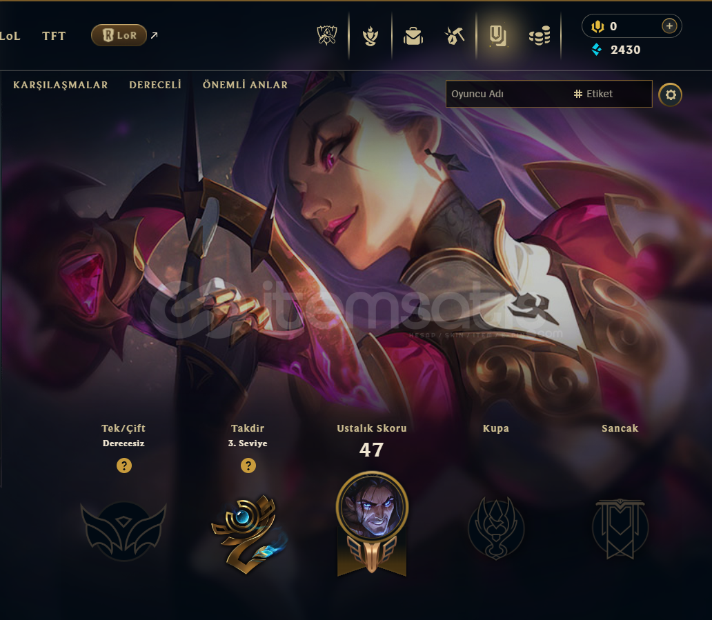 Hesap 2021 kurulum eski hesaptır ban yemez . Hesap sizin mailinize kaydedilecek . Hesap 66 Level ve Unranked . Kaliteli kostümler mevcut . İsim değiştirme hakkı mevcut . 7/24 sorunsuz teslimat . Alana hayırlı olsun . Dereceli banı mevcut .