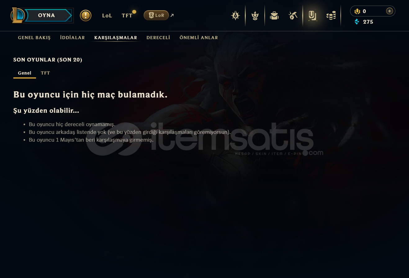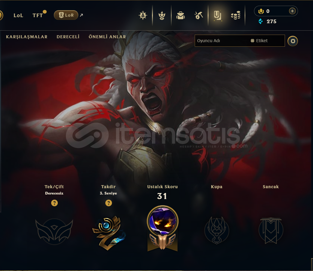 Hesap 2021 kurulum maç geçmişi olmayan eski hesaptır ban yemez . Hesap sizin mailinize kaydedilecek . Hesap 60 Level ve Unranked . Hiçbir ban yok . Hesapta kaliteli kostümler mevcut . İsim değiştirme hakkı mevcut . 7/24 sorunsuz teslimat . Alana hayırlı olsun . 5