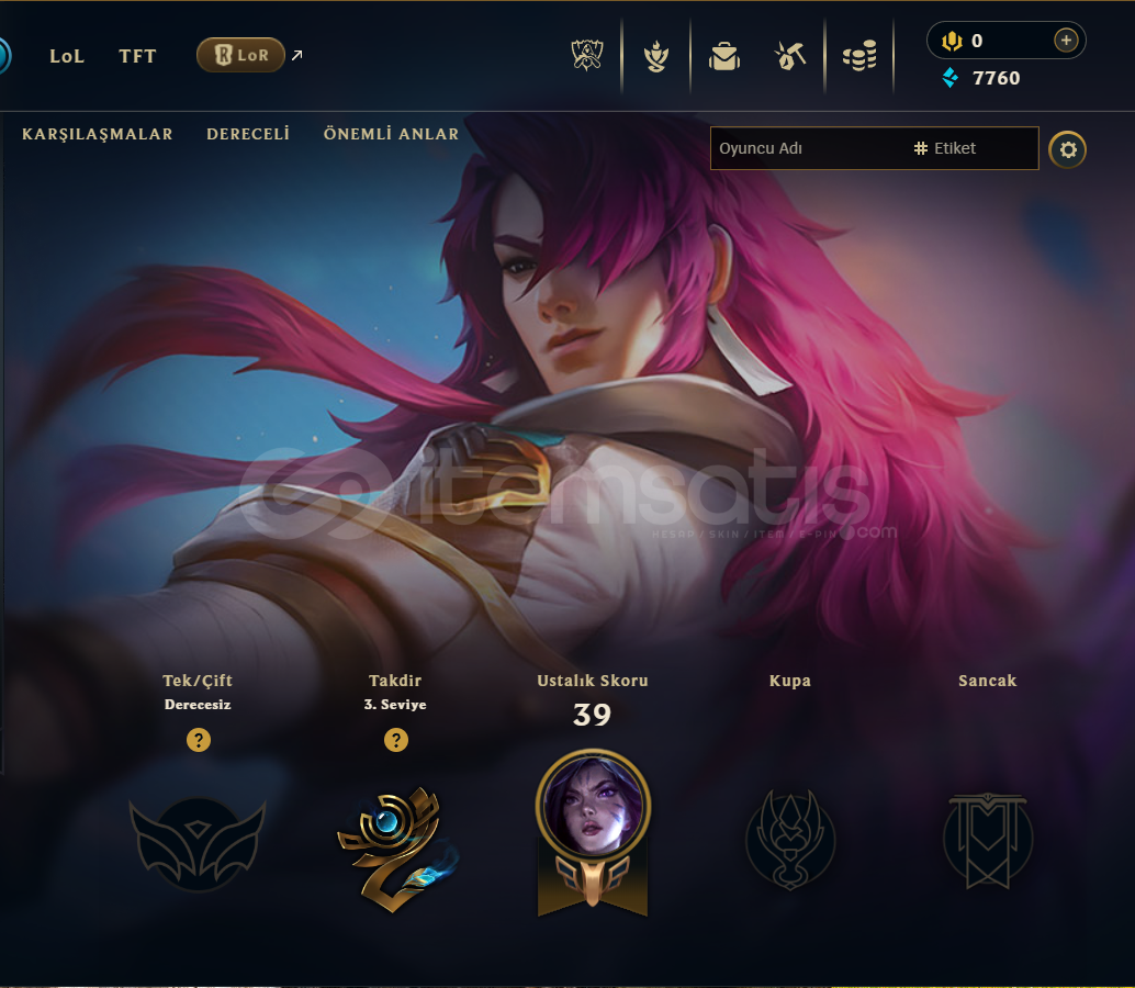 Hesap 2021 kurulum eski hesaptır ban yemez . Hesap sizin mailinize kaydedilecek . Hesap 63 Level ve Unranked . Hiçbir ban yok . Kaliteli ve bol kostümler mevcut . İsim değiştirme hakkı mevcut . 7/24 sorunsuz teslimat . Alana hayırlı olsun .