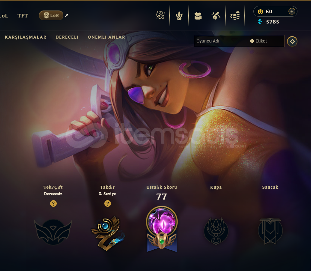 Hesap 2021 kurulum eski hesaptır ban yemez . Hesap sizin mailinize kaydedilecek . Hesap 66 Level ve Unranked . Bol mavi öz mevcut . Kaliteli kostümler mevcut . İsim değiştirme hakkı mevcut . 7/24 sorunsuz teslimat . Alana hayırlı olsun . Dereceli banı mevcut .