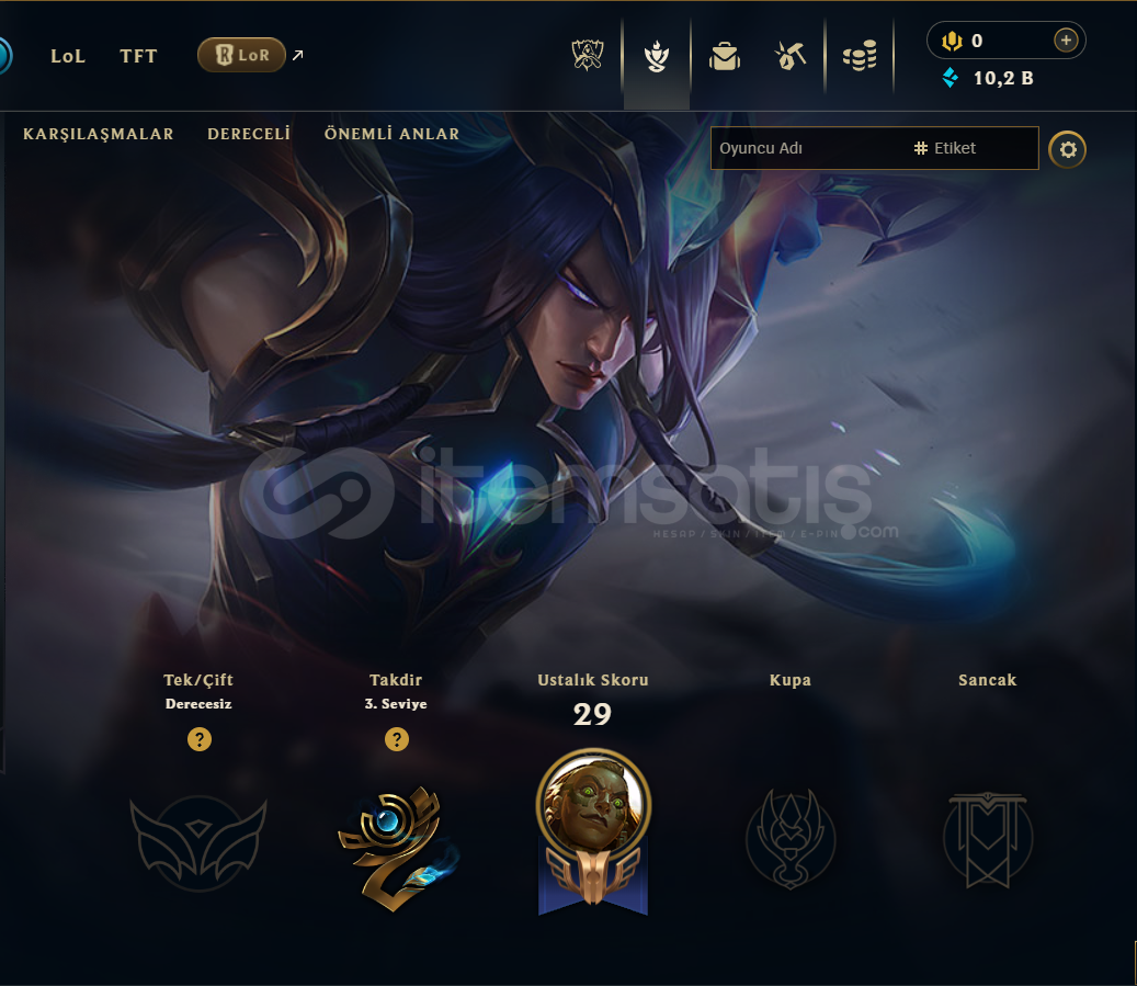 Hesap 2021 kurulum eski hesaptır ban yemez . Hesap sizin mailinize kaydedilecek . Hesap 52 Level ve Unranked . Kaliteli ve bol kostümler mevcut . Bol mavi öz mevcut . İsim değiştirme hakkı mevcut . 7/24 sorunsuz teslimat . Alana hayırlı olsun . Dereceli banı mevcut .