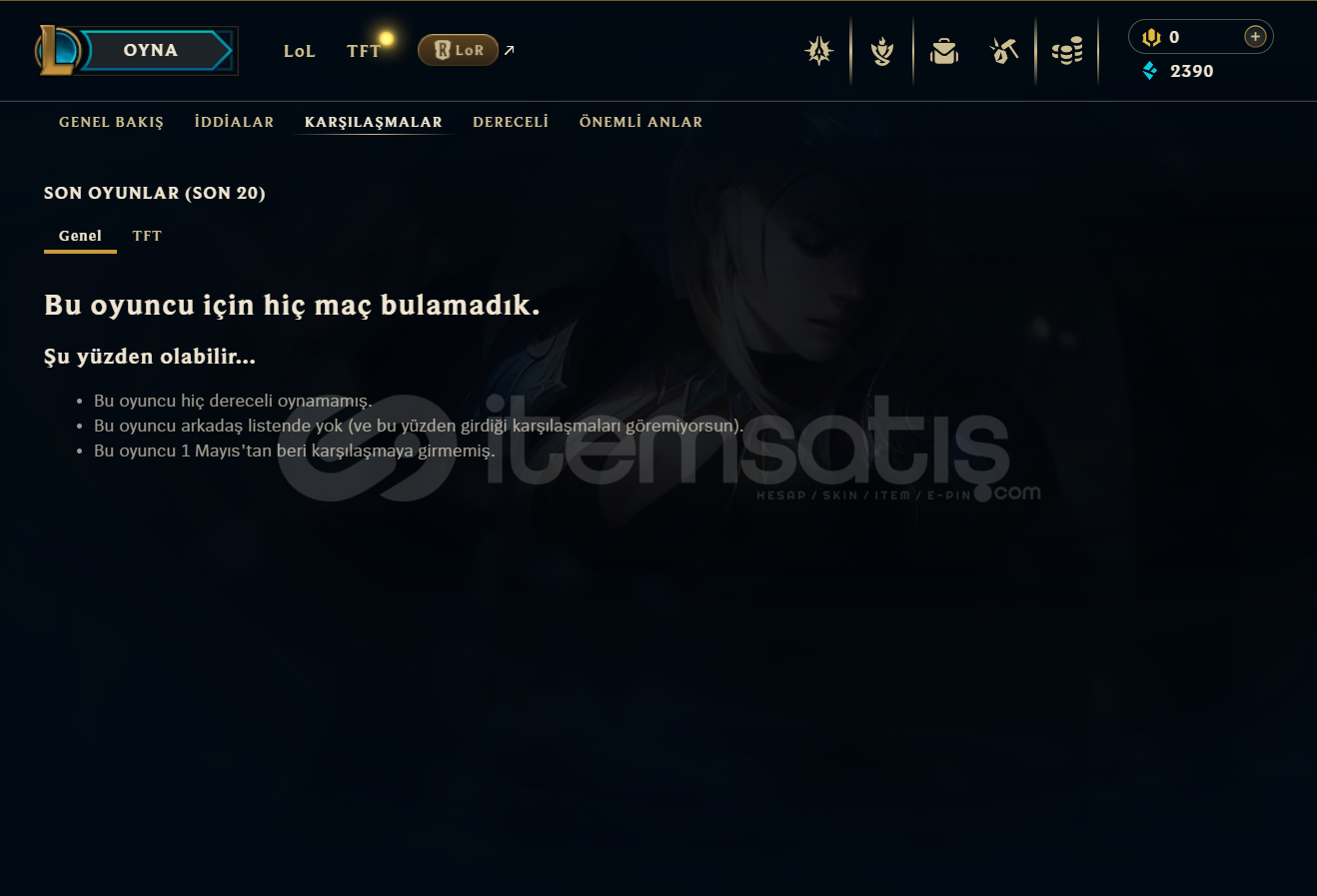 Hesap 2021 kurulum maç geçmişi olmayan eski hesaptır ban yemez . Hesap sizin mailinize kaydedilecek . Hesap 45 Level Unranked ve Fresh . Hiçbir ban yok . Kaliteli kostümler ve isim değiştirme hakkı mevcut . 7/24 sorunsuz teslimat . Alana hayırlı olsun .