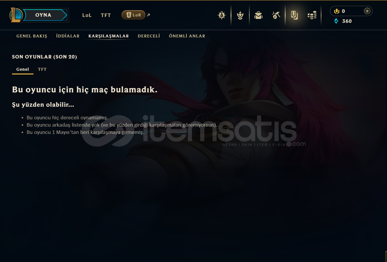 Hesap 2022 kurulum maç geçmişi olmayan eski hesaptır ban yemez . Hesap sizin mailinize kaydedilecek . Hesap 37 Level ve Unranked . Hiçbir ban yok . Kaliteli kostümler ve isim değiştirme hakkı mevcut . 7/24 sorunsuz teslimat . Alana hayırlı olsun .