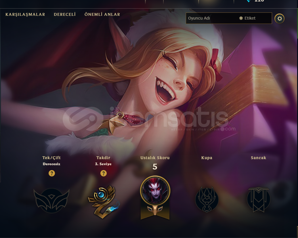 Hesap 2022 kurulum eski hesaptır ban yemez . Hesap sizin mailinize kaydedilecek . Hesap 30 Level ve Unranked . Hiçbir ban yok . Kaliteli kostümler ve isim değiştirme hakkı mevcut . 7/24 sorunsuz teslimat . Alana hayırlı olsun .