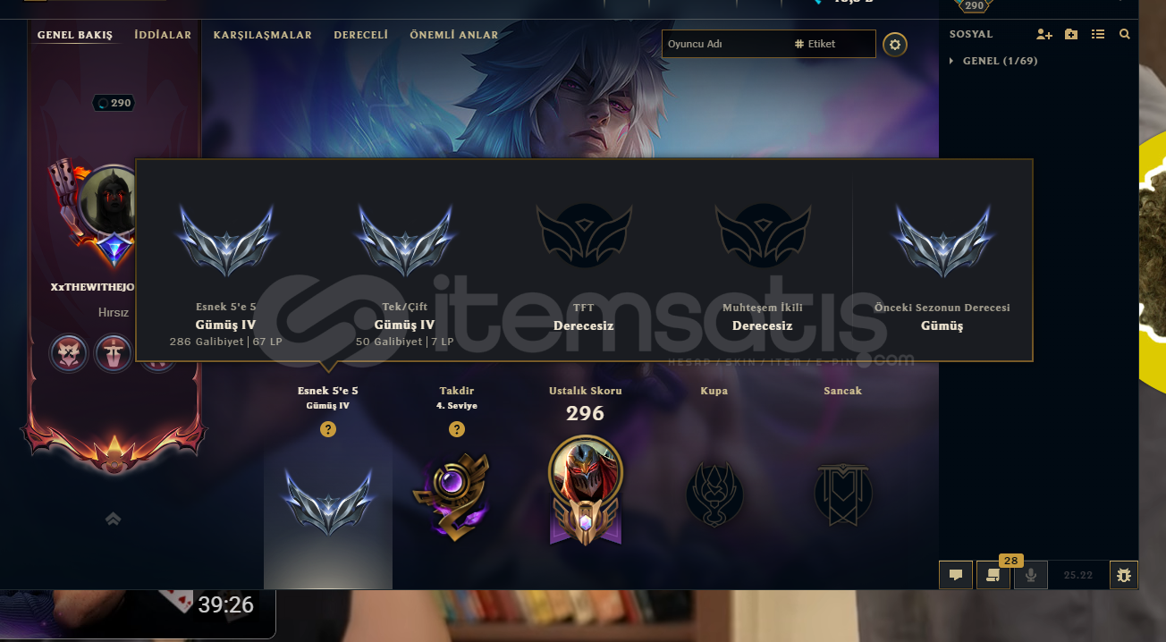 15k mavi öz var290 seviyetüm karakterler açılmış63 kostüm102 ifade var151 simge25 totem22 renk paketiful+fuleğlenmelik güzel hesap