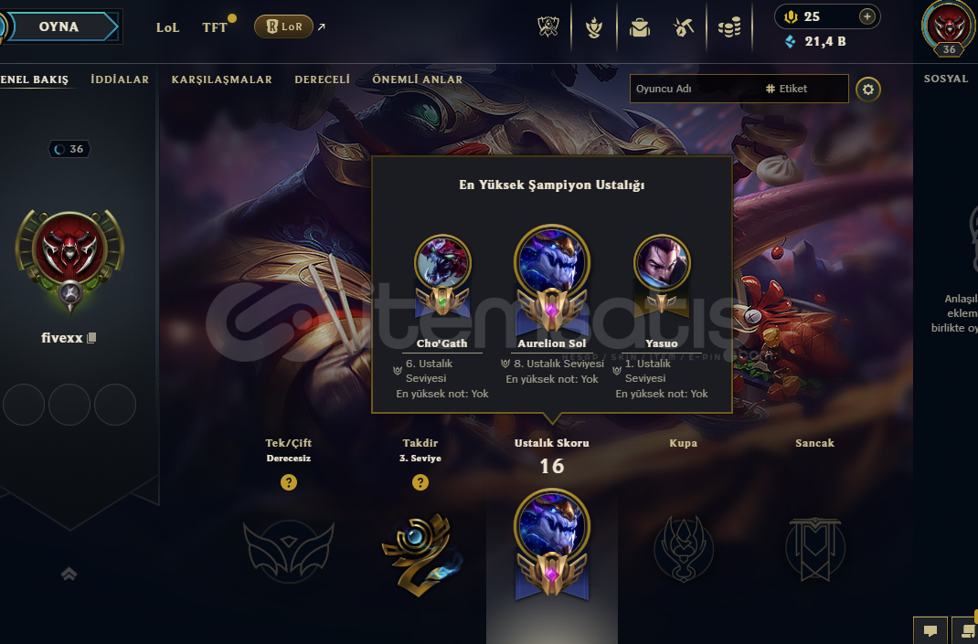 Hesabın op.gg linki: https://op.gg/tr/lol/summoners/EUW/fivexx-EUW