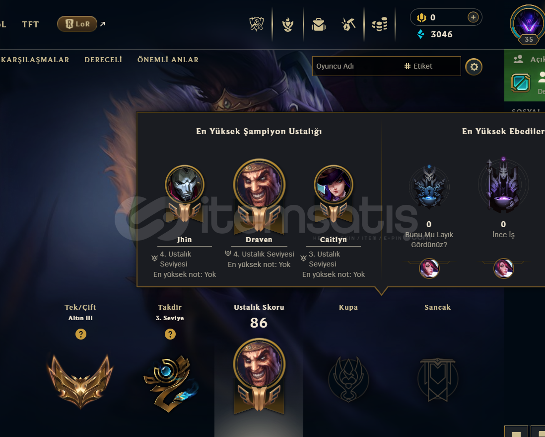 3 Kostümlü Gold 3 35 Level EUW HesapHesabın op.gg linki: https://op.gg/lol/summoners/EUW/Beautiful%20Scars-1v9