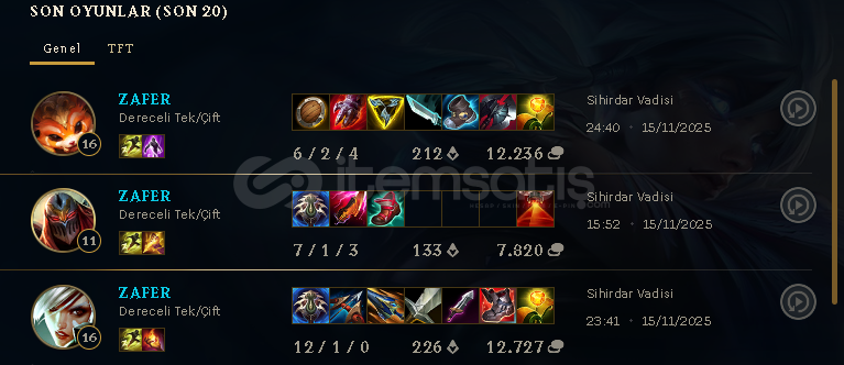 3 Maç 3 Win 7 Top Lane Skinli hesap