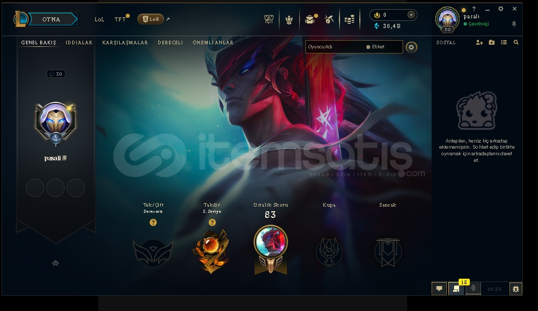 30 LV UNRANKD - OTO TESLIMAT ACIK MAIL ONAYSIZ
