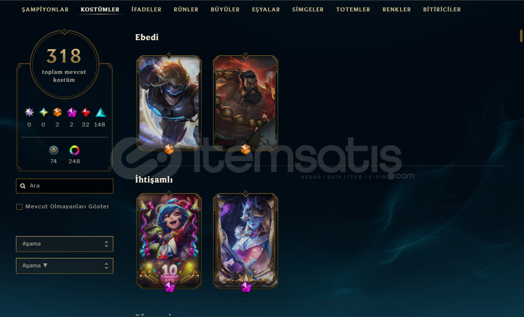 312 Kostümlü 700+Lvlli Zümrüt Hesap