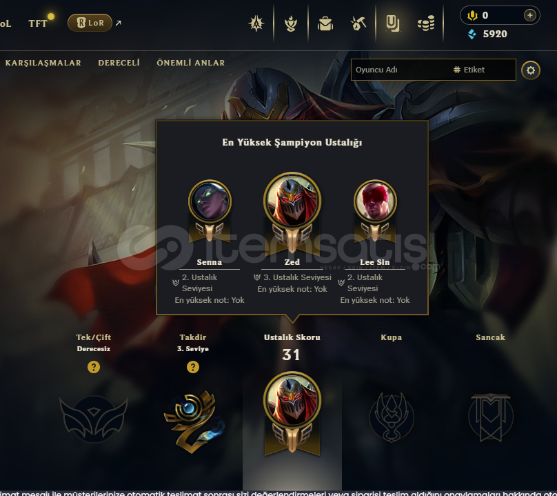 4 Kostümlü 36 Level EUW HesapHesabın ranked girebilmesi için 6 maç derecesiz atılması gerekmektedir (Ban değildir, 10 maç derecesiz görevinden 6 tane kalmıştır)