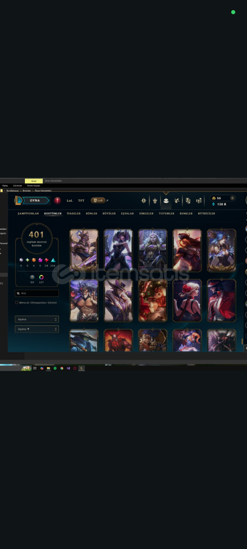 🚨 SON ŞANS! BU HESAP BİR DAHA ELE GEÇMEZ! 🚨🔥 + 400 SKİN – Efsanevi, nadir ve prestijli kostümlerle rakiplerini kıskandır!🔥 + 60 TOTEM – Her maçta farklı bir tarzla haritada fark yarat!🔥 + 100 RENK PAKETİ – Şampiyonlarını sınırsızca kişiselleştir!🔥 + 350 SİMGE – Koleksiyonunla herkese mesaj ver!💎 Bu hesap yıllar...
