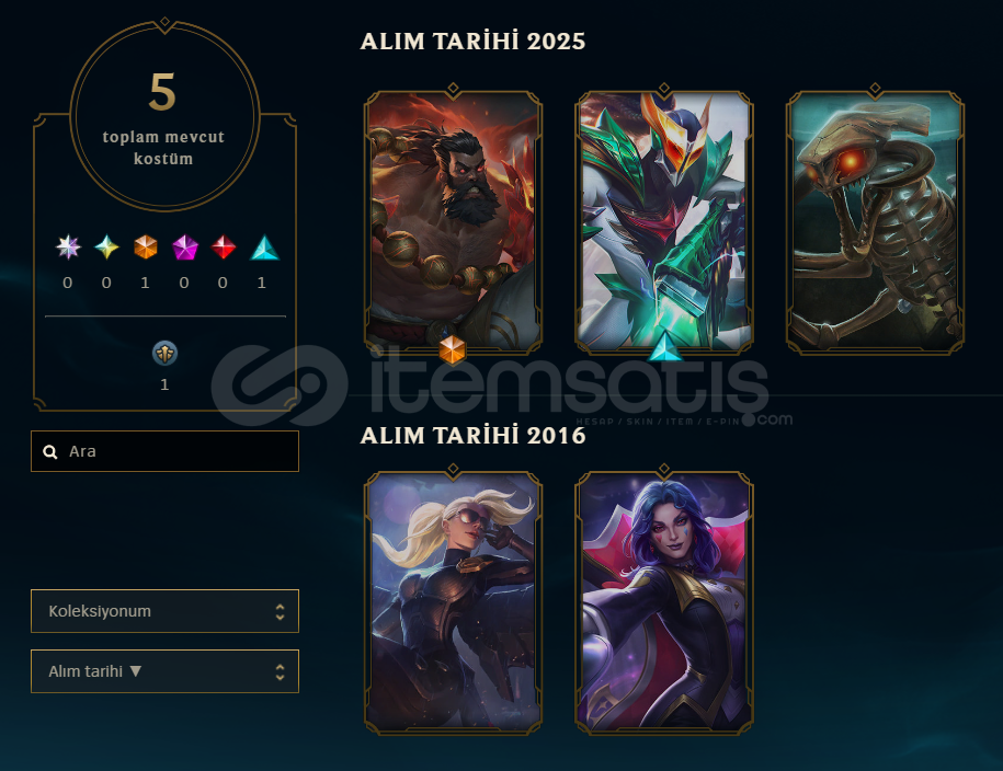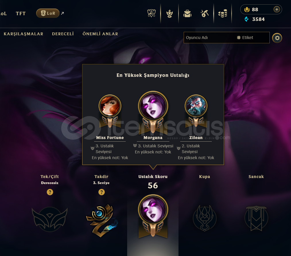 5 Kostümlü 34 Level EUW HesapHesabın op.gg linki: https://op.gg/lol/summoners/EUW/qweertyy91-EUW