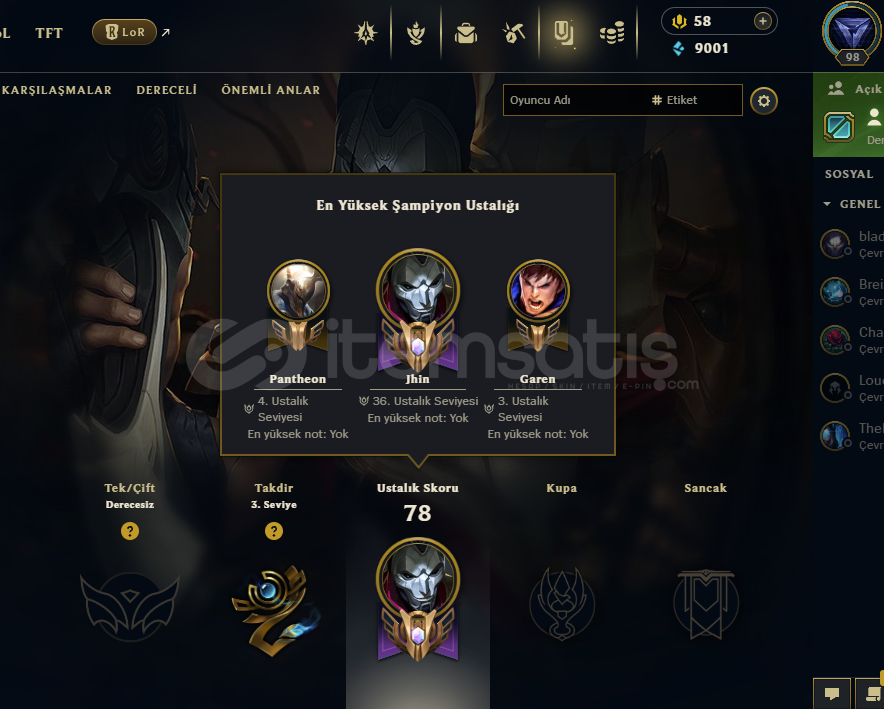 5 Kostümlü 98 Level Ranked Hazır TR Hesap