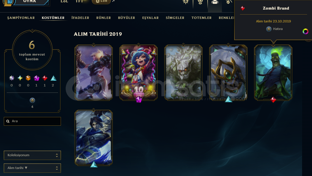 6 Kostümlü 21 Level EUW HesapHesapta Zombi Brand bulunmaktadır.