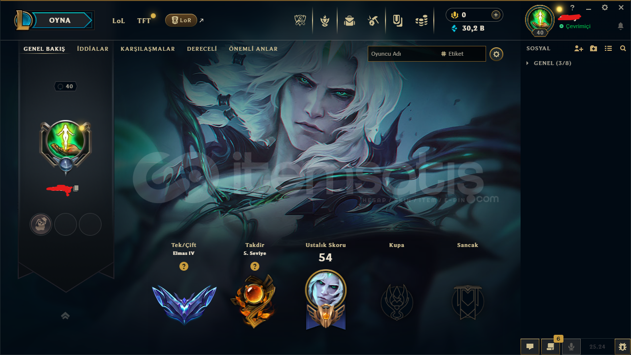25-26LP gelmektedir 14-15LP gitmektedir.53 karakter, 10 kostüm bulunmaktadır.30K Mavi öz bulunmaktadır.Ocak ayında nick değişme hakkı gelecektir.OTOMATİK TESLİMATTIR SATIN ALDIĞINIZ ANDA TESLİM EDİLECEKTİR.