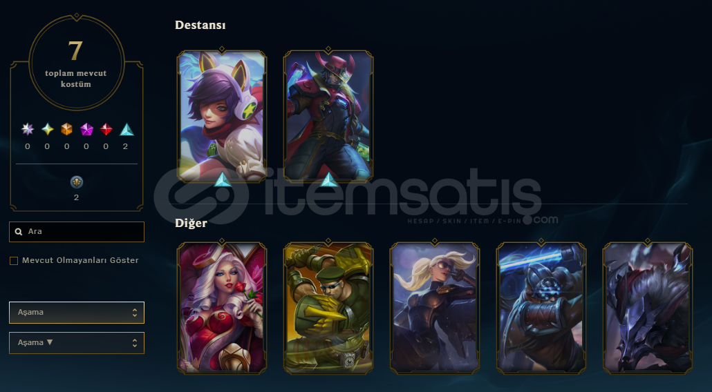 7 Kostümlü 39 Level EUW HesapHesabın op.gg linki: https://op.gg/tr/lol/summoners/EUW/pepu-1989